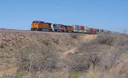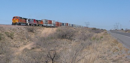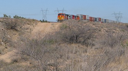 Like many cross-country trains these days, this one was pulling mostly containers that could be hauled away by trucks. |