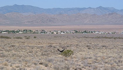 The bird in flight wasn't as interesting, but the different colors of the ridges in the background were. |