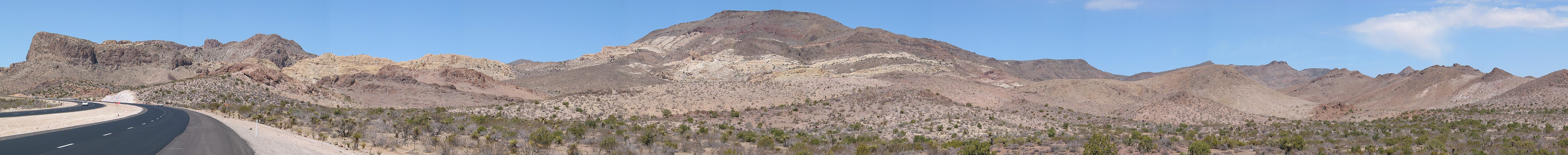 SR 68 headed across a flat toward Union Pass, the last climb in Arizona. Warning: 381K. For an even larger version, click here (811K). |