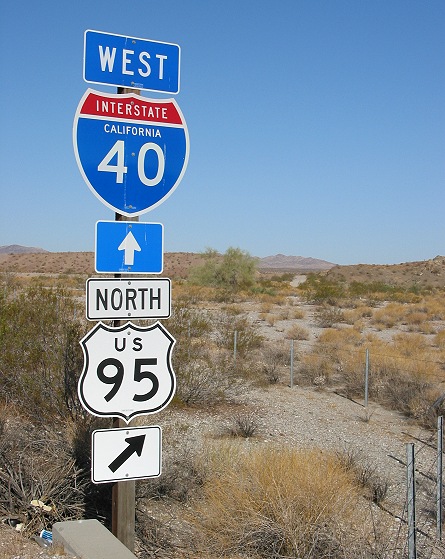 California is probably the only state that still uses the old  cut-out style sign for U.S. routes (as opposed to a white shield on a black square). |