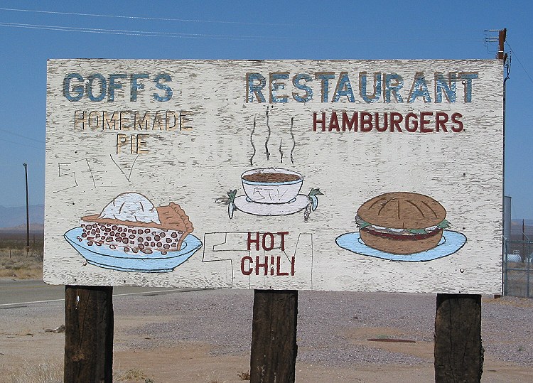 As far as I could tell, there was no Goffs Restaurant, just the sign. There was a store, but it was closed. |