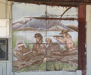 When I took a picture of this painting eleven years earlier, a friend said the frontiersman in the back was going to shoot the guy in front in the back of the head. |