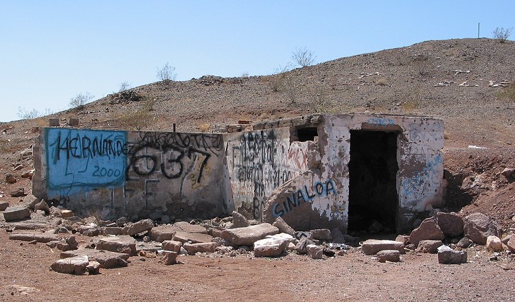 The other building at least still had a roof. The " Sinaloa" graffiti reminded me of the Bruce Springsteen song, " Sinaloa Cowboys," about two Mexican brothers  who make methamphetamine in the desert. |