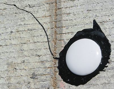 This is what one of Botts' Dots (named for their inventor) looks like. It is a convex plastic disc glued to the pavement for the purpose of warning the driver when he/she is drifting across a lane. They are common in California and southern Arizona. Of course, they wouldn't work too well in the North because the snowplows would scrape them off. They also are not fun to run over on a bicycle, but they are easier to avoid than rumble strips. This particular one was on a brand spanking new stretch of SR 58 between North Edwards and Mojave. |