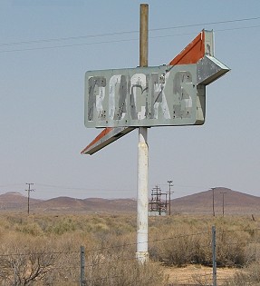 This sign was by the side of SR 58 west of the North Edwards exit. It looks like at various times it said " ROCKS" and " CAFE" (although something just doesn't look right about that last letter). |