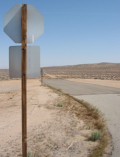 Not only did CalTrans post stop signs on all of the little dead-end streets that feed into  the widened SR 58 corridor, but that sign post you see in the distance is a " stop ahead" sign! Oh well, I suppose they'll need them eventually. |
