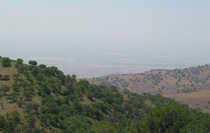 This was my first hazy glimpse of the green, flat Central Valley. It took me 2-1/2 hours to get there from this point. |