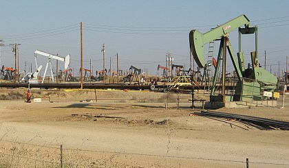 There were oil fields on both sides of the highway  west of Lost Hills. |