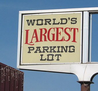 This sign was posted at Blackwells Corners. I think it was a good marketing choice to promote " James Dean's Last Stop" on billboards rather than " World's Largest Parking Lot." |