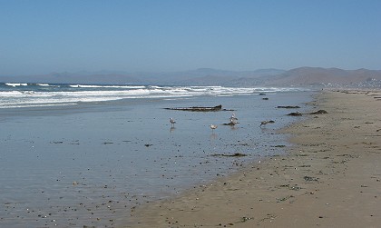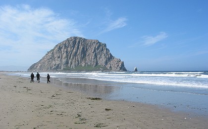 Here's another view of Morro Rock with some anonymous beach walkers. |