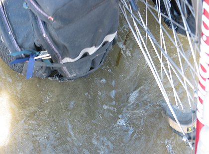 Here it is, seventy-six days in the making: the ritual dip of the front wheel in the Pacific Ocean. I had ridden over 3,000 miles since I dipped my rear wheel in the Atlantic Ocean at Tybee Island, Georgia. |