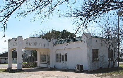 This sign on a gas station wall gave distances to 30 cities throughout Texas and New Mexico. |