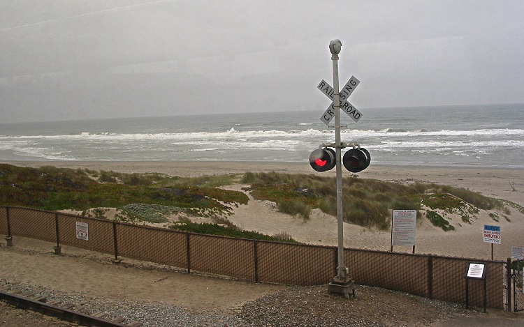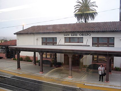 This was the view of the San Luis Obispo train station from the upper level of the Pacific Surfliner. The woman was seeing off the man sitting behind me. I know because they were talking to each other on their cellular phones a moment earlier. |