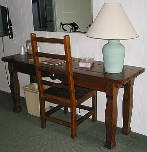 The Smokey Bear Motel featured hand-made furniture from a Hondo artisan. It was a welcome change from the cookie-cutter pressboard stuff in almost every other place I stayed. Notice the bicycle in the mirror. |