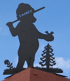 This nifty silhouette of Smokey with a bandaged paw stood atop the roof of the Smokey Bear Restaurant. |