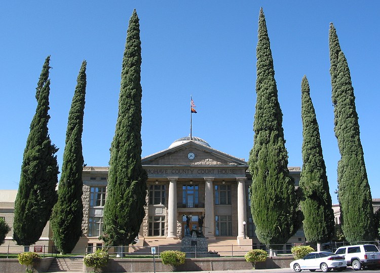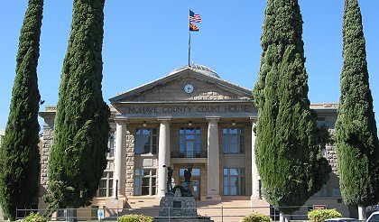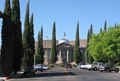 The Mohave County Courthouse was beautifully set at the end of a tree-lined street. |