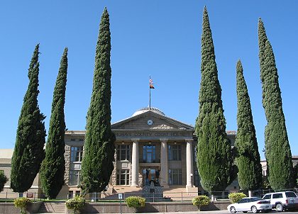 Looking up from the foot of the  Neo-Classical Revival  courthouse, it was easy to forget that  I was in the American Southwestern desert. |