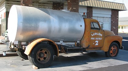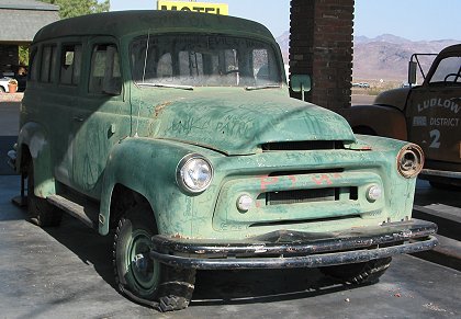 This old water truck was parked under the canopy of an old gas station between the motel and the coffee shop. |