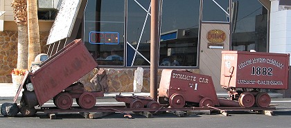 Ludlow was once a mining town, as commemorated by these mine cars in front of the coffeee shop. |
