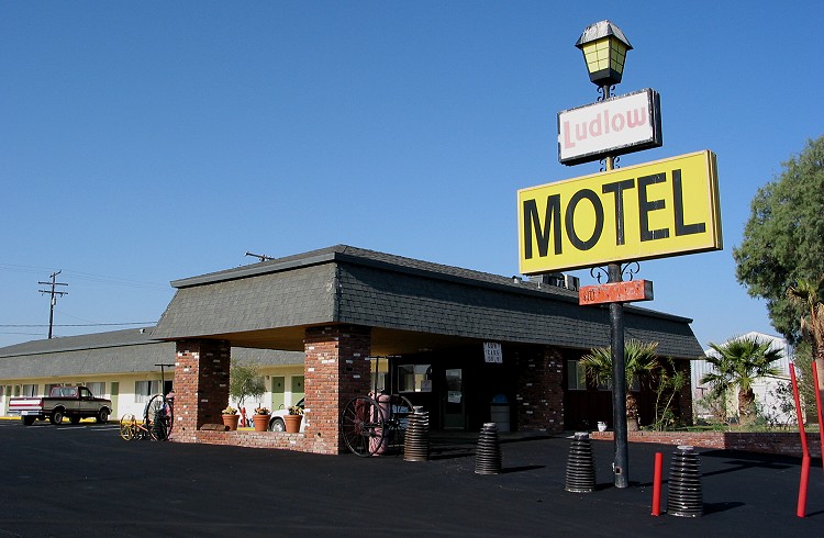 The sign for the Ludlow Motel was simple, but it was a welcome sight after 110 miles of desert cycing. |