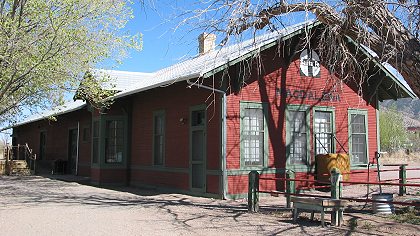 The old Santa Fe depot, repainted in its original colors, was now the town library. |