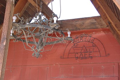 This cool light fixture hung over the doorway, along with the nifty Bagdad Cafe metal sign. |