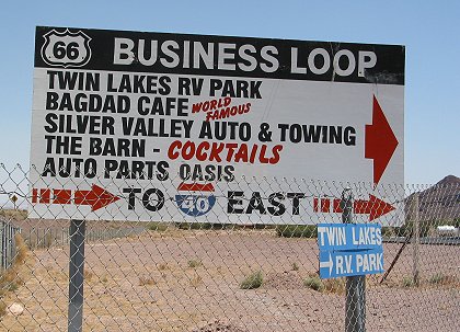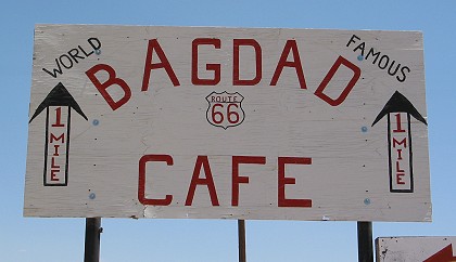 At the other end of town, this sign touted the " world famous" Bagdad Cafe. |