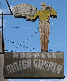 This neat old sign promised friendly service at Roswell Motor Supply. |
