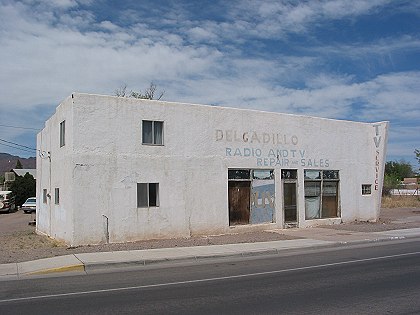 Something about the sun-bleached lettering and the clouds made this seem like a quintessentially Southwestern scene. |