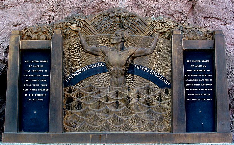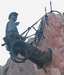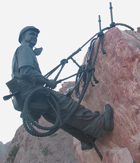 This statue honors the most legendary of the Hoover Dam workers, the high scalers. These men basically swung from ropes along the rock walls drilling holes and planting explosive charges. |
