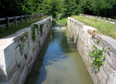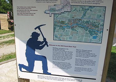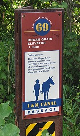 I got a very late start, and  by the time I got to Gebhard Woods in Morris, it was 1:30 PM. Although much of the trail was nicely shaded, it still promised to be a hot ride. I stopped to read some of the nifty mile markers (placed circa 2000) that noted many historical tidbits about the canal. One of the most interesting facts that I didn't know was that the old towpath was converted to a trail way back in the 1930's by the Civil Conservation Corps. Since most of the trails I've seen in Illinois were built on railroad right-of-ways over the past 30-40 years, the I & M may be the oldest recreational trail in the state.