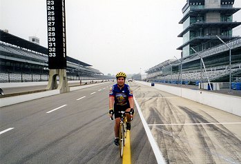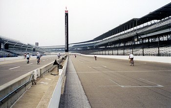 The ride was a casual affair with no clocks or lap counters. I could do as many 2.5-mile laps of the oval as I wished until the track closed at 2:00 PM. The first few laps were lots of fun. I stopped often to take pictures and to soak up the ambiance and history of the place. Since I was riding at one tenth of the speed of the race cars, the track seemed much bigger than on television.  I gathered that the majority of the riders weren't as awestruck as I was, but maybe they were Indy natives or people who had done the ride in previous years, so it wasn't such a big deal for them.