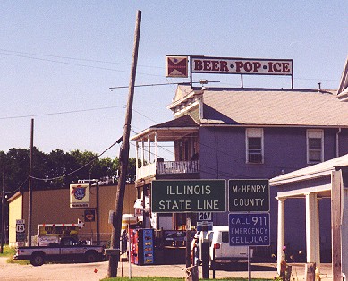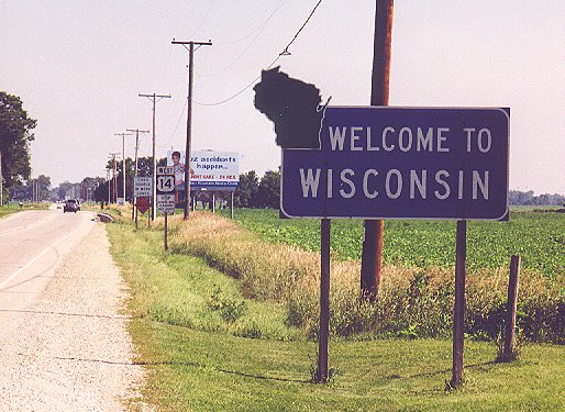 I got tripped up a bit looking for Hebron Road. In town, it was called Bigelow, and then it changed to Hebron Road at the edge of town. Ah, the perils of following the cue sheets backward! This road was long, hilly and demoralizing. My spirits sank as my dead legs dragged the bike and me up each hill at less than 10 mph. I even walked up one of them, the only hill I walked all year in over 2,100 miles of cycling. I couldn't understand why this was killing me since the previous weekend I had ridden 45 miles on Friday night and 45 miles on Saturday and felt fine. Miles later it dawned on me that I was carrying a significant load (duh!), plus I was facing a moderate headwind. Or maybe I was just coming down off my sugar high from the donuts. I went up Gasch Road to State Line Road, which I followed for nine miles. I cruised down a monster hill, tucked into as aerodynamic a position as possible and exceeded 30 mph--what a rush! When I crossed US 14 at the little town of Bigfoot, I took pictures of the Wisconsin and Illinois welcome signs.