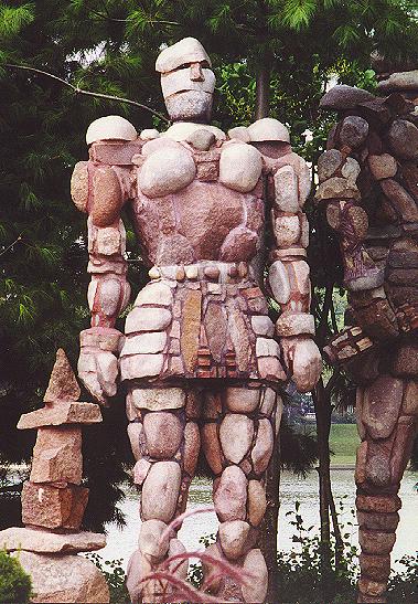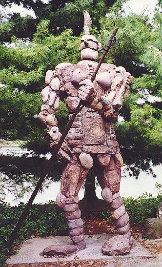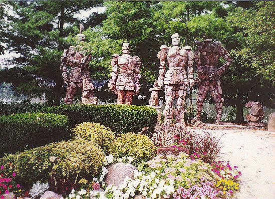 Heading north along the Rock River Recreational Path, people were very friendly, and I stopped to talk to several. It seems that the best way to meet people on a bike is to put on panniers. This just begs the question, “Where are you from?” which is naturally followed by, " Where are you headed?" This section of the trail was also graced by the best (and quirkiest) public art I saw along the entire GIT: the Rock Guardians of Rockford, four warriors made of reddish-brown rocks.