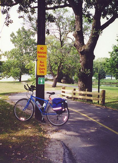At the north end of the Pathway, I discovered something I never knew existed--a toll bridge across the Rock River on Harlem Road. Cyclists got to cross for free, so I went over the Rock for the third time of the day. Heading north on Victory Lane (how appropriate for the last day of Trail Blazing!), I used a bike lane that really worked, as opposed to the dangerous ones in Chicago. The secret? " No Parking" signs. That meant no worries about opening car doors. One thing was just like Chicago, though. When I came to a school, parents were parked in the bike lane waiting for their kids. I was livid--motorists think they have a right to do whatever they please and screw the cyclists. Besides, it was a gorgeous, warm, sunny afternoon. Couldn't their kids have walked a block to their cars? No wonder juvenile obesity is on the rise. Little Johnnie walks 50 feet from the school doors to the minivan, and then they stop at McDonalds on the way home. Sheesh!