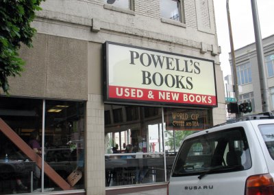 Next I had to find my way to downtown Portland and Powell's. The directions from their Web site didn't quite work for me. I don't know why I ever trust anyone else's directions because nine times out of ten I can find a place better on my own. Anyway, after following those directions to the wrong exit, I instantly knew I was off course and performed a fast U-turn across several lanes. I got back on the expressway to the next exit, and from there the directions worked fine (they had said to get off at the first exit, but they should have said second). Downtown Portland was annoying to drive around, as bad as Chicago in some ways. Despite the city's friendliness toward cyclists and pedestrians, the streets are choked with automobiles. Pedestrian rights in Oregon and particularly Portland are a shock to Illinoisans, and unfortunately pedestrians show no courtesy whatsoever to motorists (example: one of my rules as a pedestrian is that if I make a car wait for me to cross a street when that motorist is planning to turn, I never make that same motorist wait for me to cross the street he is turning onto as well -- that's just rude).