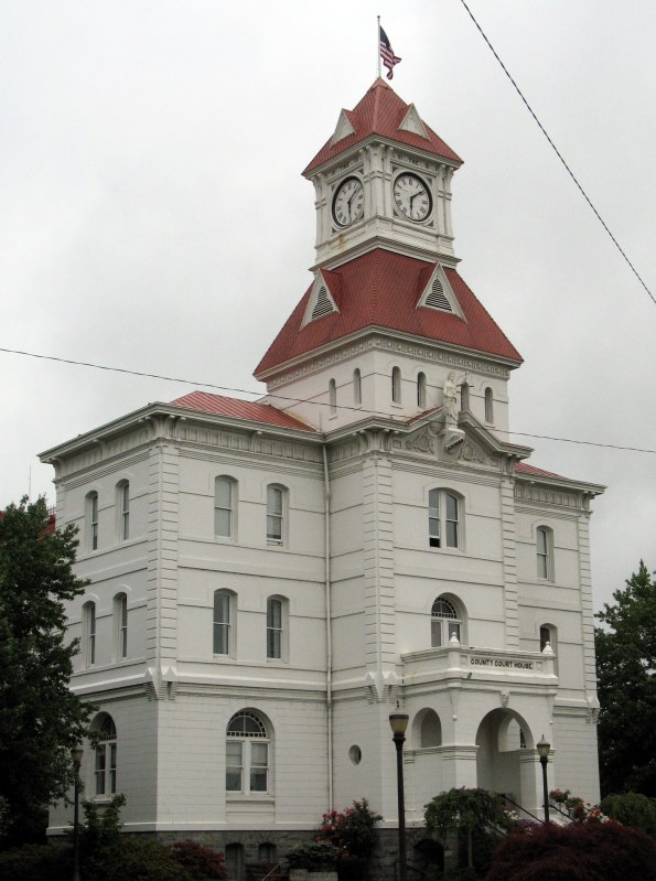 We only had about 35 miles to drive to Corvallis to see cousin Kristie, so we decided to visit to an English garden in Salem first. It was a bit too realistic for our tastes that morning -- dreary English weather surrounded us and we didn't feel like walking in the rain. I drove west over the Willamette River to collect Polk County, and then we headed south on OR 99W. Although it was a direct route, it was my biggest navigational error of the trip -- according to my original plan, we were supposed to return to I-5 and head south to Albany in order to collect Linn County, and then go west to Corvallis. Later that day, we even came within sight of Linn County -- it was right across the Willamette River -- but we didn't go there. In a few days, I would have to drive an extra 45 miles up to Santiam Pass to get it from the east side instead.