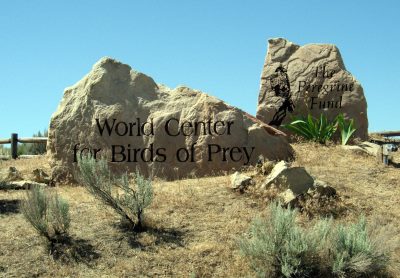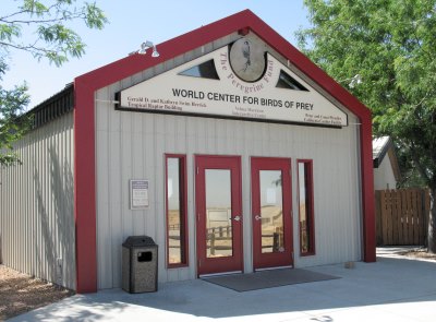 Incredibly, we got to the World Center for Birds of Prey around 9:15, although it cost us a chance to eat breakfast at Shari's. After our slightly disappointing visit to Wildlife Safari, I was leery of another animal attraction. At least this one was cheaper, only $5 per person. We paid our admission in the small building on the right, which is also the gift shop.
