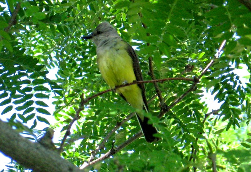 A western kingbird kept divebombing the hawk from a nearby tree, apparently to protect a nest. Sure enough, when I got home, I read this in the western kingbird's Wikipedia entry: "The name kingbird is derived from their 'take-charge' behavior. These birds aggressively defend their territory, even against much larger birds such as hawks."