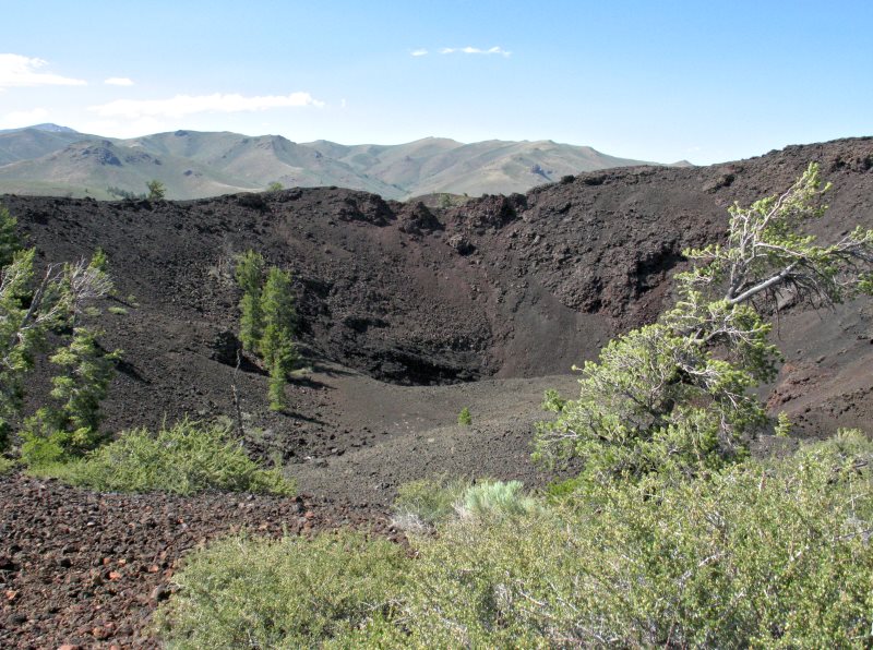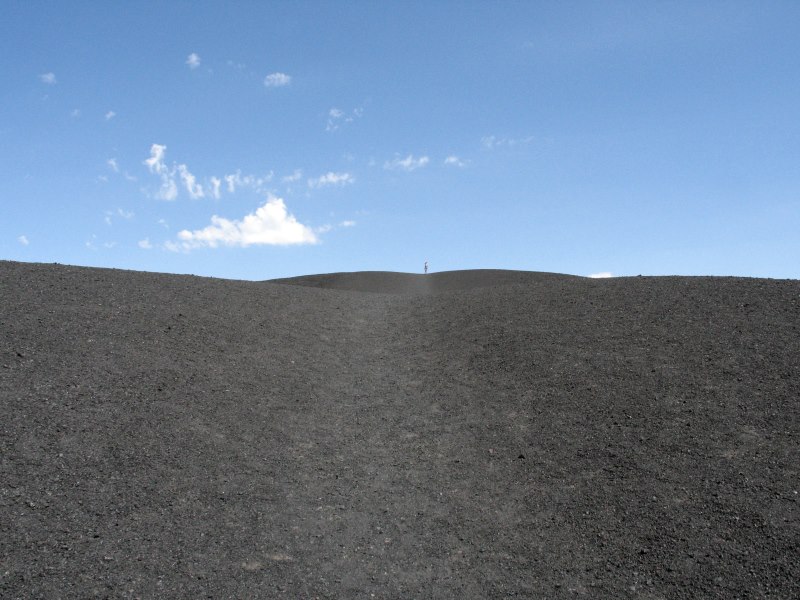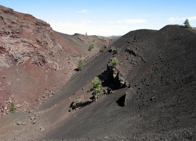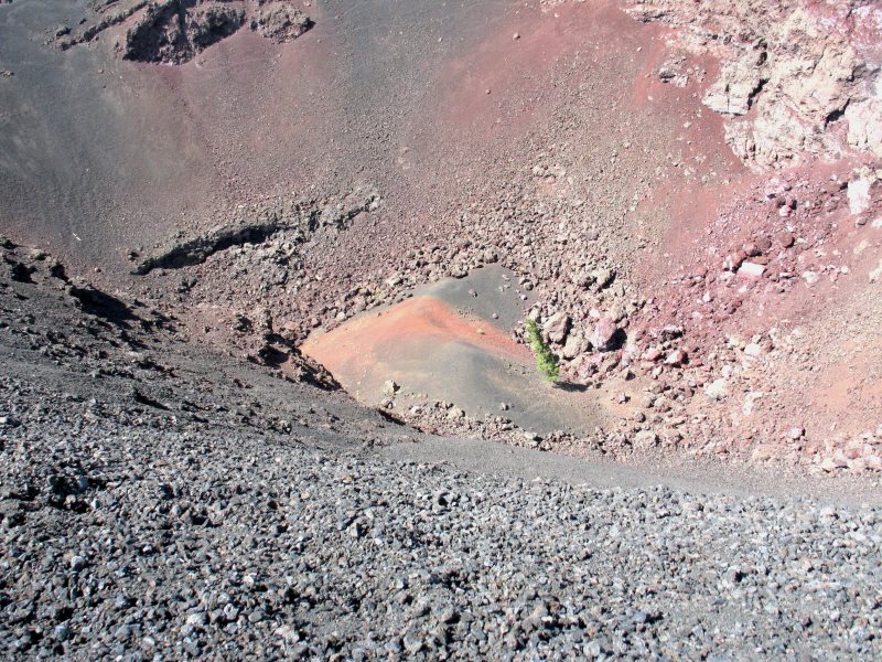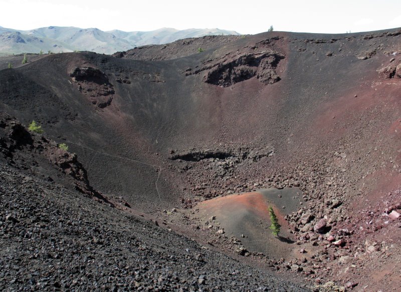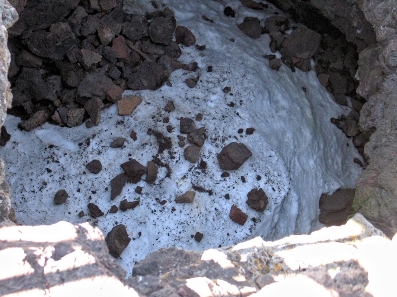 And this was the second cone. Yes, that is snow at the bottom! The air temperature was well into the 90s and the surface temperature of the black rock exceeded 100 degrees, but volcanic rock is an amazing insulator. Also, the cone was situated such that sunlight never reached the bottom.