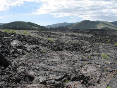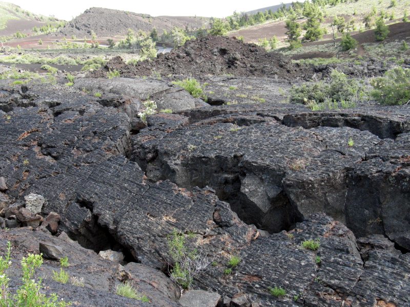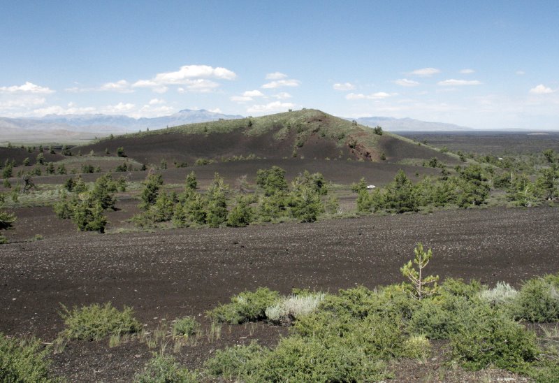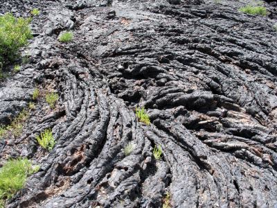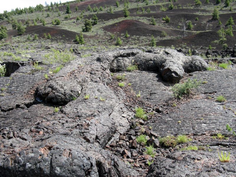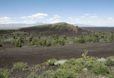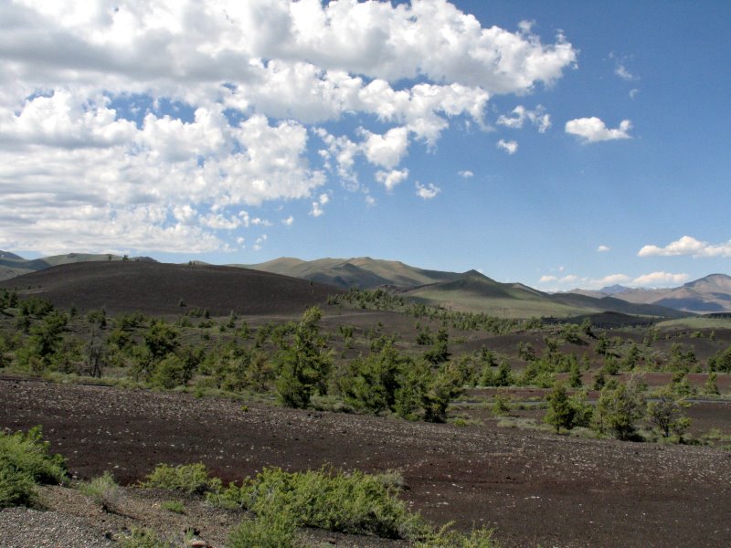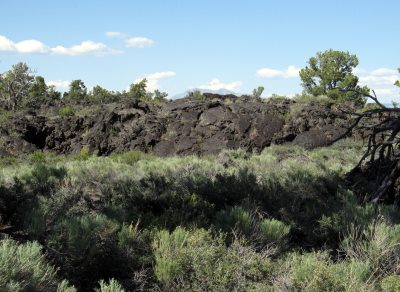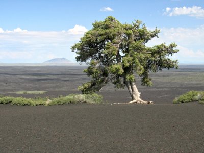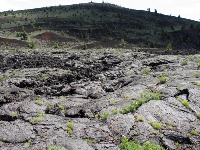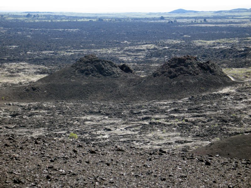 I was on the North Crater Trail, which led all the way back to our first hike on the North Crater Flow Trail. It's too bad I didn't have the time (or water) to hike any further because this was one of the best moments of my whole vacation. Blackish rock extended to the horizon, broken by the occasional green-leafed tree.