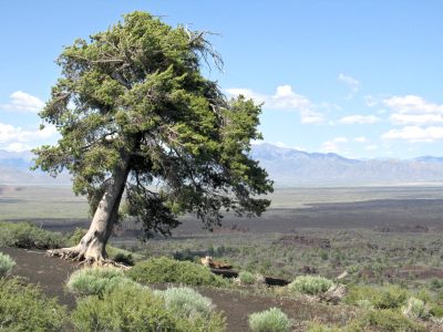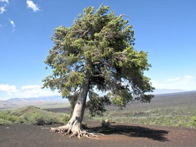 The grade plus the altitude (6,181 feet) had me huffing and puffing a bit, but I made it. On top, this windswept tree caught my eye.