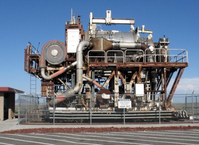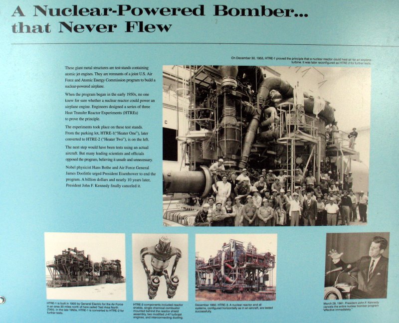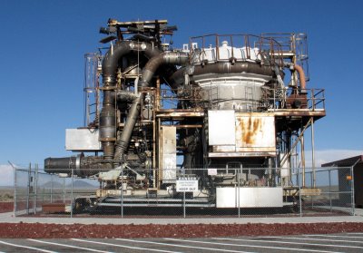 As you can read below, these are test stands containing atomic jet engines. Yes, there was a program to make airplanes with nuclear reactors inside. After 10 years and a billion dollars, President Kennedy pulled the plug on it. For more on this and related sites, visit the Bureau of Atomic Tourism.