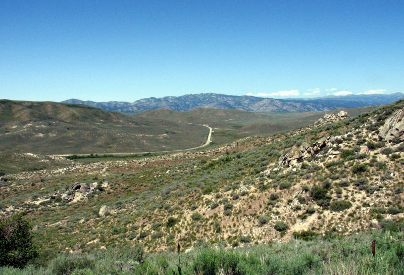 Unfortunately, we spent more time than I had planned at the World Center for Birds of Prey. Something had to change in our schedule. I decided we would have to grab a fast food lunch so we could keep driving to Craters of the Moon, which was 160 miles from Boise. We drove the interstate to Mountain Home and stopped at Wendy's at the U.S. 20 exit. My wife wanted to dine in, but I wanted to eat in the car. Usually it's the opposite; I'm the one who wants to dine in. Anyway, she ended up spilling her pop and had a wall-eyed fit, as her Texan grandmother used to say. After more than two weeks on the road together, tempers were flaring. And tomorrow would be worse. My food was okay but disappointing. That spectacular burger in Daysville was still fresh on my taste buds, and a Wendy's burger simply could not compare. In the meantime, I was driving carefully up and down a series of ridges on U.S. 20. We stopped at this scenic overlook to clean up.