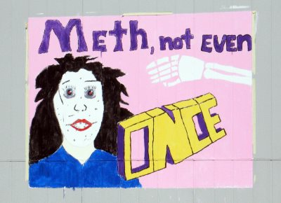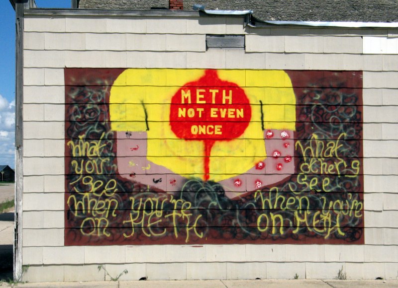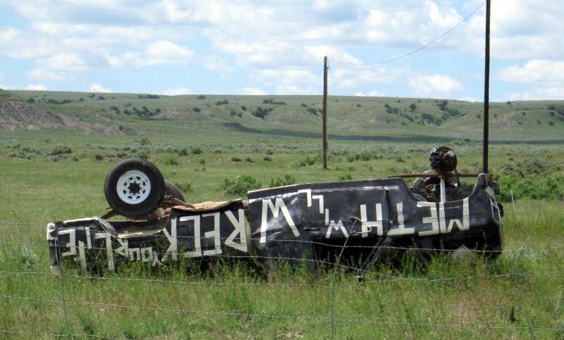 We left Glendive and I-94 to cross eastern Montana on desolate MT 200 (hmm, there's a reason Montana's ZIP abbreviation is M-T). Railroad tracks paralleled the highway for a while, but they ended in Brockway. I saw at least seven artistic anti-methamphetamine displays throughout Montana. I wondered if they had some sort of contest for them, and it turns out they did. This over-the-top artwork may or may not be working, but I couldn't help photographing it.