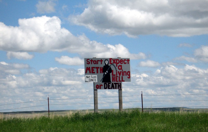 Outside of town, we saw another meth sign. I could have cropped this to show the sign better, but those clouds are too awesome to cut out.