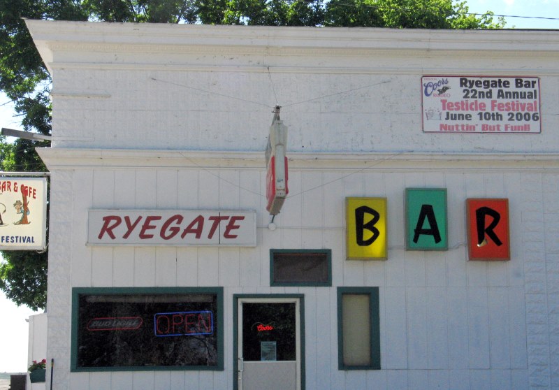 Apparently, Ryegate's claim to fame is their annual celebration of bull balls. The first photo is for the illustration. The second is to show that someone in Ryegate actually knows how to spell testicle (though that's an old sign for 2006, a 2007 sign was on the front). "Nuttin' but fun!"