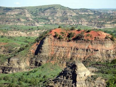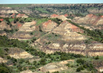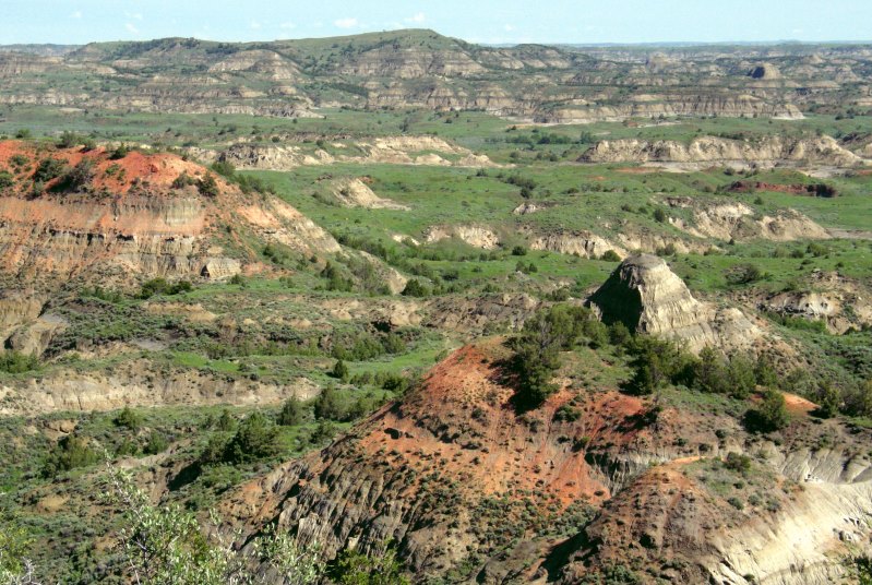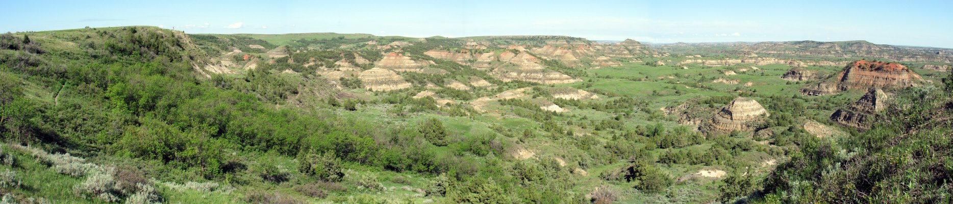We ate in the car on the way toward Montana. But first I wanted to stop at Painted Canyon, a section of Theodore Roosevelt National Park adjacent to a rest area on I-94. Since the sky was clear, I hoped to get more colorful pictures of the badlands than I did yesterday.