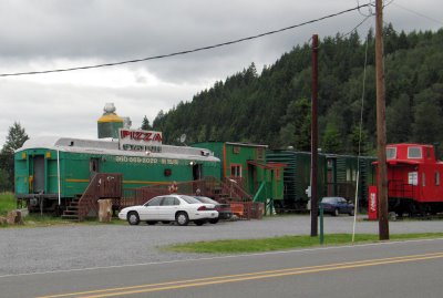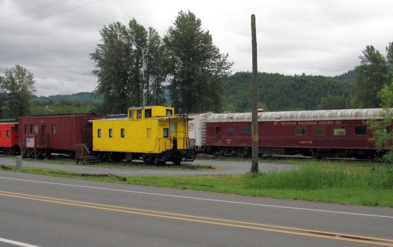 As we passed restaurant after restaurant on WA 706, my wife became more agitated that she had chosen to eat in the crappy cafeteria when surely all of these places were much better. In Elbe, we saw a bunch of old railroad cars now being used as a restaurant and motel. I recalled that the pizza guy had mentioned this place and cursed myself for forgetting it earlier. The Mount Rainier Railroad Dining Co. would have been a cool place to eat no matter how the food was.
