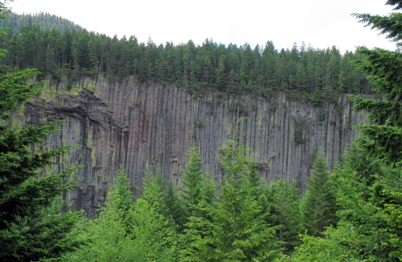 The drive from Yakima to Mount Rainier National Park on U.S. 12 was beautiful. The highway followed the Tieton River valley through Mt. Baker-Snoqualmie National Forest. After White Pass, the road slipped into another valley and Gifford Pinchot National Forest. Somewhere along the way, we stopped at a scenic overlook that described how this rock formation known as the Palisades was formed by a lava flow. The verticality of this rock is reminiscent of Devils Tower in Wyoming, which also has volcanic origins.